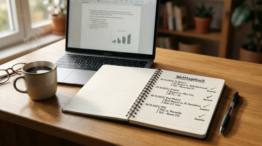 Ein Wetttagebuch muss nicht kompliziert sein. Eine einfache Tabelle reicht völlig aus. Wichtig ist nur, dass Sie konsequent alle relevanten Informationen festhalten. Dazu gehören mindestens das Datum, das Spiel, die Art der Wette, die Quote, der Einsatz, das Ergebnis und der Gewinn oder Verlust. Optional, aber hilfreich, ist eine kurze Notiz, warum Sie diese Wette platziert haben.